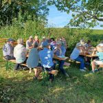 Ein Teil der Festbesucher wanderte ca. eine Stunde von Bönnigheim aus, ein Teil kam mit dem Auto und ein Teil kam mit dem Fahrrad zur Rosenfelder Hohle wo sich das Bänkle befindet.