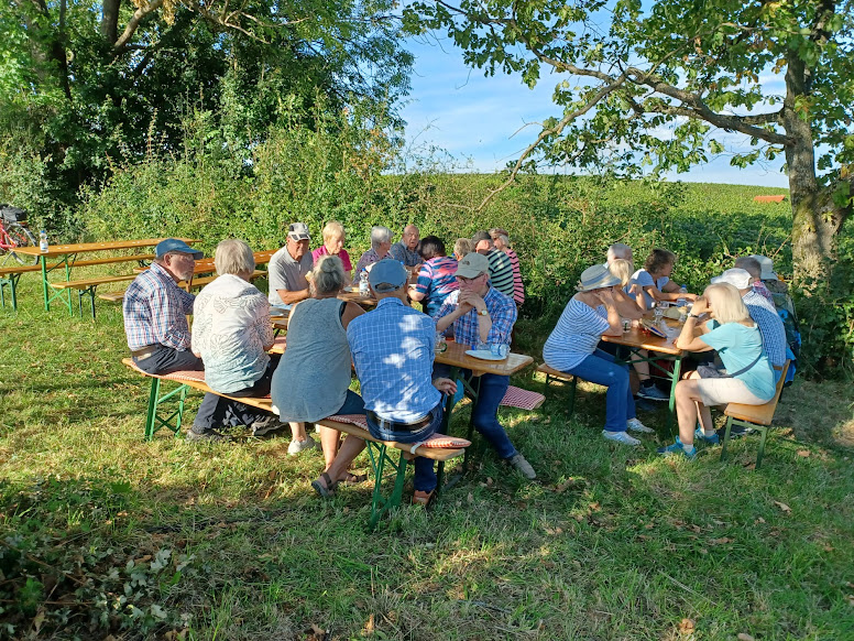 Ein Teil der Festbesucher wanderte ca. eine Stunde von Bönnigheim aus, ein Teil kam mit dem Auto und ein Teil kam mit dem Fahrrad zur Rosenfelder Hohle wo sich das Bänkle befindet.