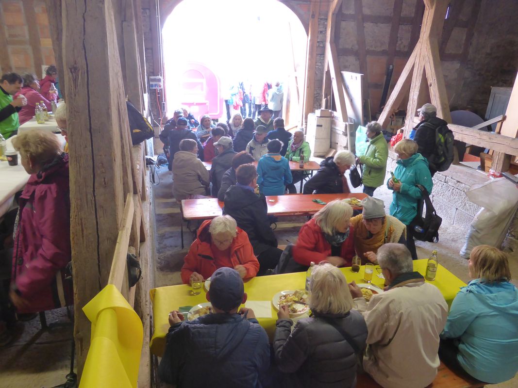 Um 9:30 Uhr versammelten sich über 110 Wanderfreunde die teilweise mit öffentlichen Verhrsmittel und mit dem PKW angereist waren im Meiereihof in Bönnigheim.
