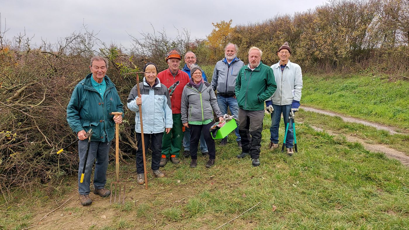 Am Samstag, 08. November 2025 fand die zweite große Landschaftspflege des Bönnigheimer Albvereins im Jahr 2025 im Gewann „Saubronnen“, das sich hinter dem Lauffener Feld befindet, statt.